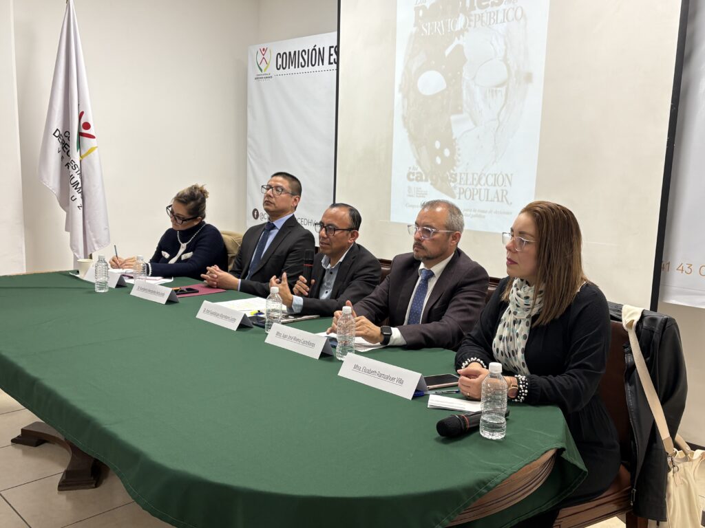 La Comisión Estatal de Derechos Humanos de Veracruz (CEDHV), Mtra. Minerva Regina Pérez López, recibió al Dr. José Guadalupe Altamirano Castro para la presentación de su libro “Los perfiles en el servicio público y los cargos de elección popular”, con la participación de la Dra. Itzel Jurado Ortíz, el Dr. Humberto Hernández Reducindo, el Mtro. Juan José Rivera Castellanos y la Mtra. Elizabeth Ramzahuer Villa como moderadora la Mtra. Nazareth Montes Velásquez.
